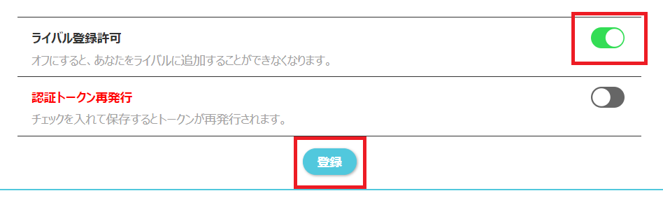 ライバル登録機能を使う場合は、マイページ下部の設定の変更をクリックし、 ライバル登録許可を有効にして登録をクリックしてください。