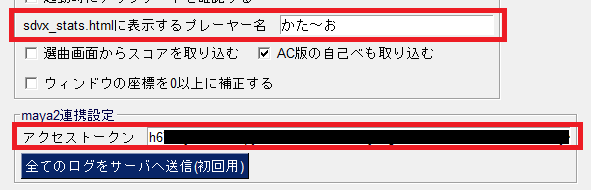 既存の自己ベストをsdvx_helper portalへ送信したい場合は、 全てのログをサーバへ送信(初回時)をクリックしてください。